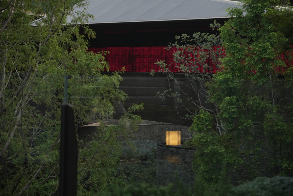 Turning past another pavilion, one connects to another corridor. Fragrant Hills maple leaves and ancient trees with intertwined branches lead to the end, where the light and shadows of carved lacquer, red tiles, and mist intermingle. Each direction is different, presenting different changes in light and shadow. A balance is struck between heaviness and lightness, between the revealed and the transparent. The scenery shifts with the viewer’s perspective, reflecting from one place to another. For a moment, one cannot tell whether it is the light of the sky illuminating the red maples, or the red maples reflecting the screen wall. The beauty of the Orient is hidden in the subtle details – the intertwining of branches and vines, the ambiguity of shifting light and shadow. One feels that ten thousand mountains are about to disappear, filling the twilight, beginning with the budding of spring.