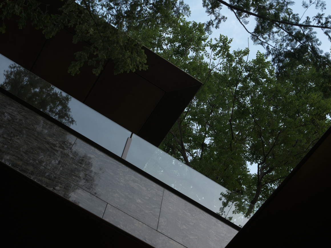东方的山水精神,在于融合放达,不滞于物。 我们于此空间的游走穿行,恰似身在此山。在路径的折转、高低的起伏间,自然完成 “行、望、居、游” 的体验流动。自然亦是这流动的主角。光、风、绿意自枝桠与缝隙中自由生长。于不同层高驻足,视角倏然变换:或平望对岸亭台,或俯观中庭枝叶,或仰观天光云影,那是一个生生不息、气韵生动的现代山林意象。