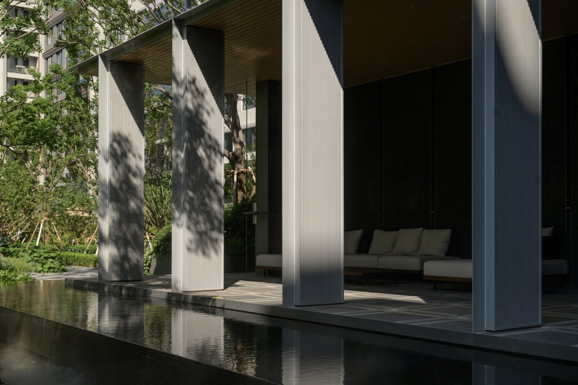 Weaving artistry, long embraced by luxury brands, symbolizes the pursuit of excellence and spiritual refinement in curated living. Drawing inspiration from the site’s historical context as a former textile factory, the project distills the weaving technique into a powerful symbol. This linear weaving motif permeates the development’s nomenclature, landscape spaces, and design details—forging unique imprints both tangible and intangible.
