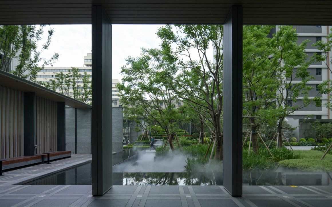 穿行归家大堂,摆脱城市的浮躁与倦怠,流水潺潺的层级跌水,形成生机勃勃的通道,引导人们走向内心的宁静。