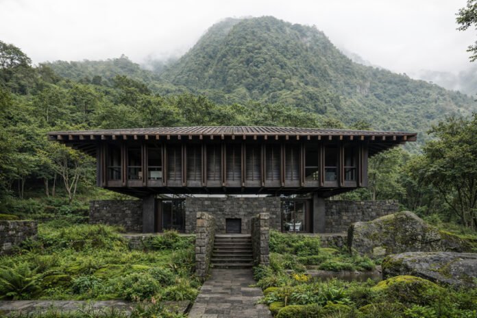 V Taller:Yakushima is not a landscape to be observed from a distance, but a living system to be entered. Defined by constant rainfall, dense forests, and a deep geological presence, the island reveals itself through time, sound, and materiality rather than form. In this context, architecture cannot be imposed; it must emerge, adapt, and coexist. The project is conceived as an extension of the terrain itself. It rises from a stone base that grows naturally from the topography, echoing the large rocks that surface throughout the island. This stone plinth anchors the building to the ground, receiving both the inhabited program and a central vertical core that organizes the spatial experience. Rather than being placed on the site, the architecture appears as something already present, slowly revealed. Natural water flows across the site plays a fundamental role in shaping the project.