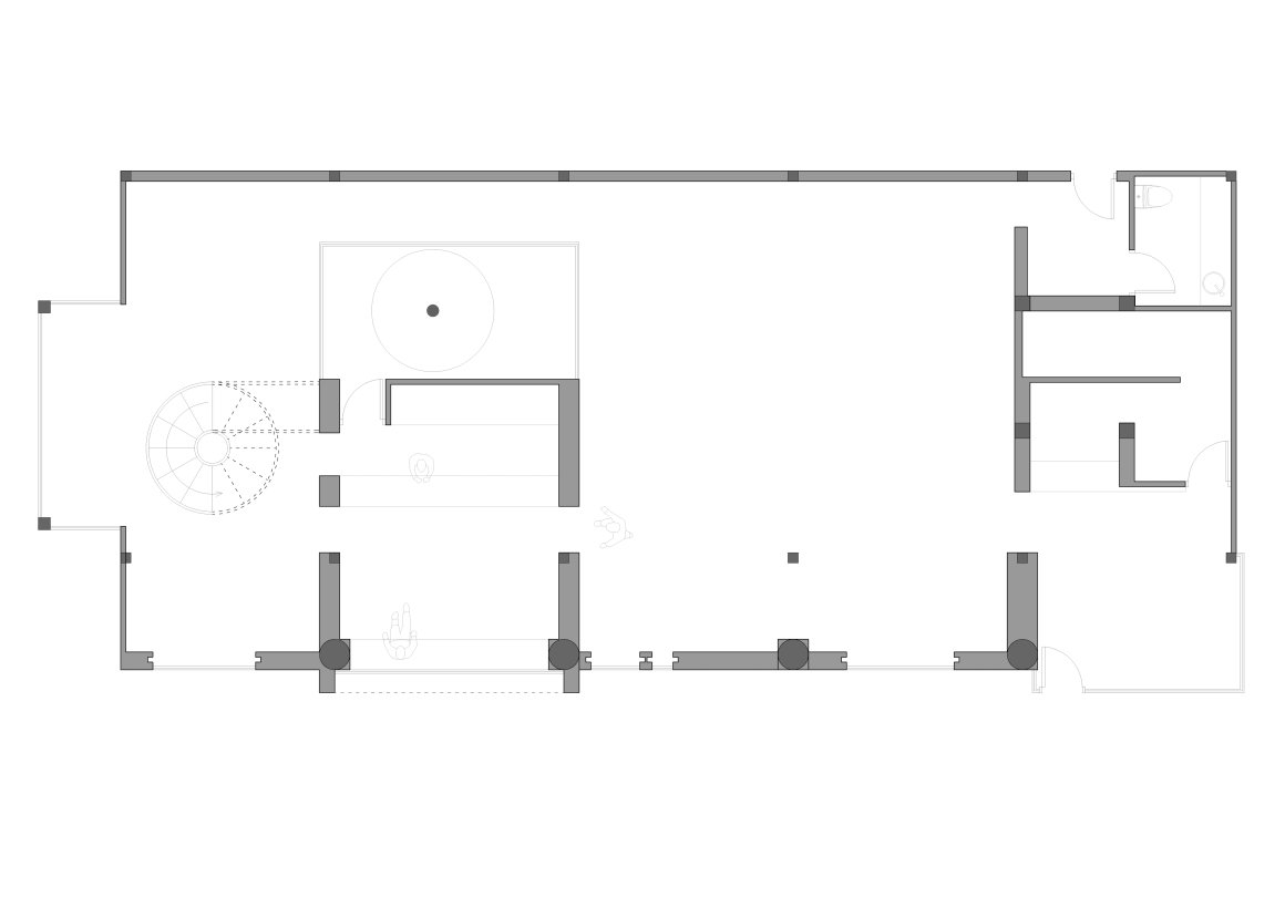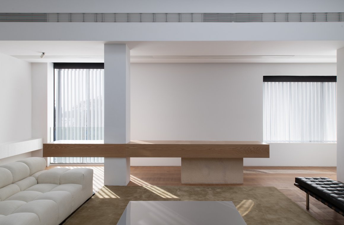 在进行空间改造的过程中,我们发现裸露出的结构质感,与新空间产生的对立和对话十分有趣。于是,我们有选择地保留了部分原始结构材料,将其戏剧感地置于新空间之中,斑驳的表面印刻了时间的印记,这些结构材料正如其间陈列的艺术作品一般,成为视觉的焦点。