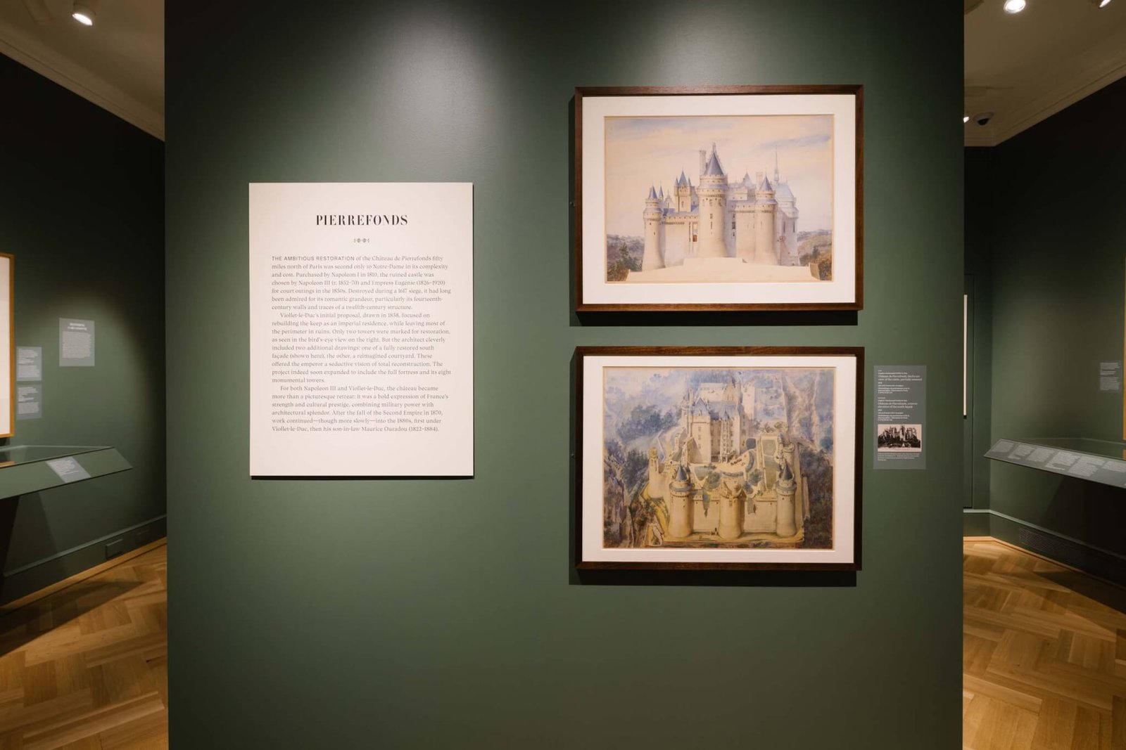 One of the related salients emerging from the retrospective is the remarkably high quality of physical documents elaborating the beginnings of the Romanticist arguments that Viollet-le-Duc would later expand in his canonical Entretiens sur l’architecture from 1863. Bergdoll and Bressani were both granted unprecedented access to the Paris-based Médiathèque du patrimoine et de la photographie’s archive, which holds roughly 20,000 Viollet-le-Duc works, to supplement their chronological rendition. Their efforts match that of the French government’s, which relied heavily on original construction documents to guide its whirlwind restoration.
