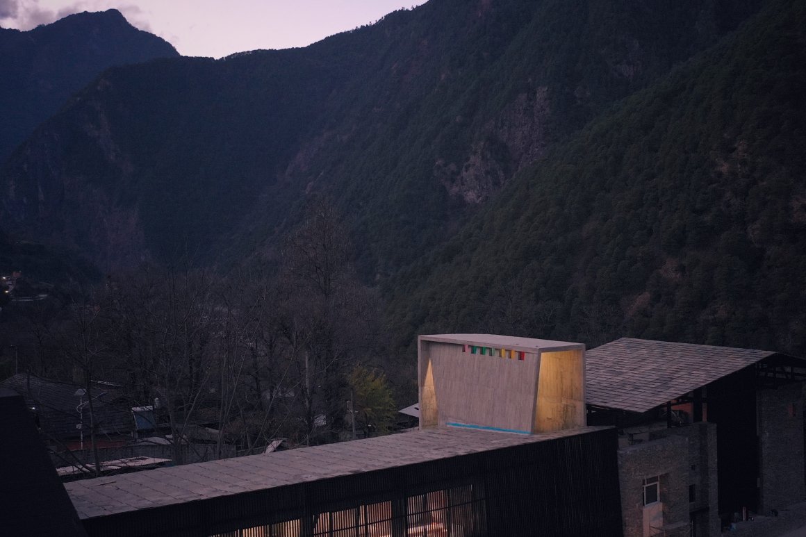 Ding Mama’s guesthouse is the only new building in the complex. The site was previously scattered terraces, and we catered our design to adapt to the terrain, ensuring connectivity with the hostel’s main hall. Backed by mountains, all rooms offer views of the snow-capped Gawa Gap mountain.