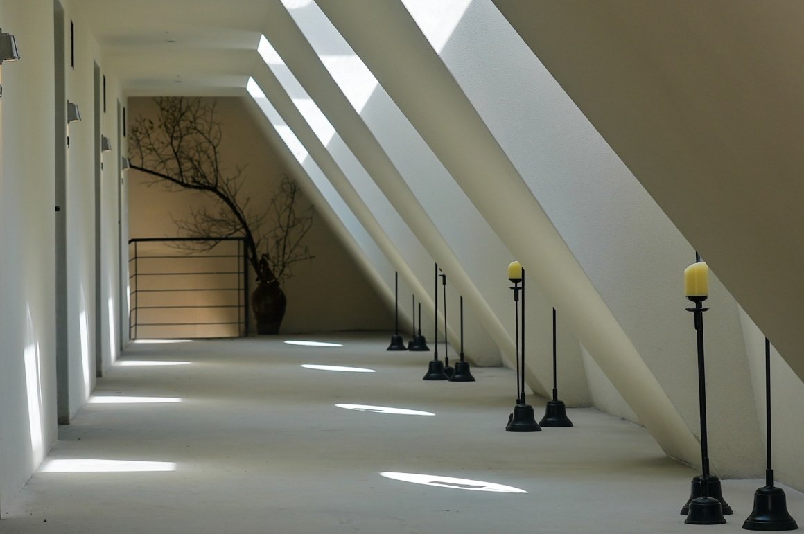 结构本是空间中的基础构件,但当二层坡屋顶的建筑结构被转换为另一种更为艺术的表达时,光与影的对比,极富几何力量感的序列递进,外衍的张力在不同维度中变得具象。