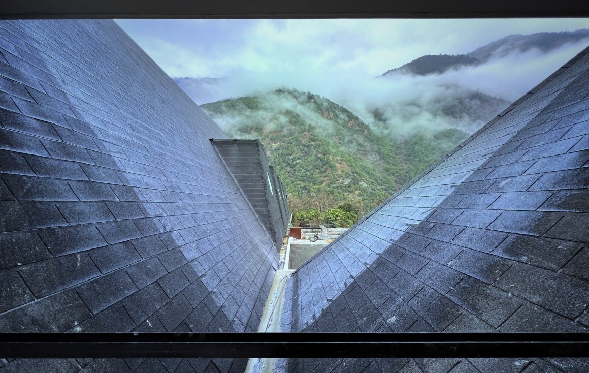 Most of the trees within the site were preserved. They may not have any meaning or represent anything, yet like Ding Mama’s hymns, they can still greatly influence their surroundings.An old tree growing from a basin within the terrain and encircled by a bridge lies coincident with the main building. When the fog settles between the mountains, it poetically frames the old tree and the buildings against the mountainous backdrop of Bingzhongluo. This scene raises a call for inner reflection and tranquility in the viewer.