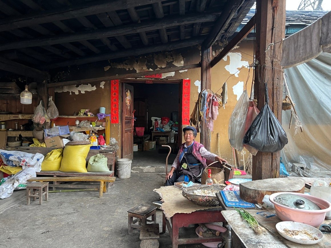 When we first arrived in 2022, 82-year-old Ding Mama remained simple and warm-hearted. However, her home and courtyard had become weathered and old. The rainy climate of Yunnan led to leaks, dampness, and tilting walls, making the home that had once hosted countless travelers unable to shelter them from wind and rain.