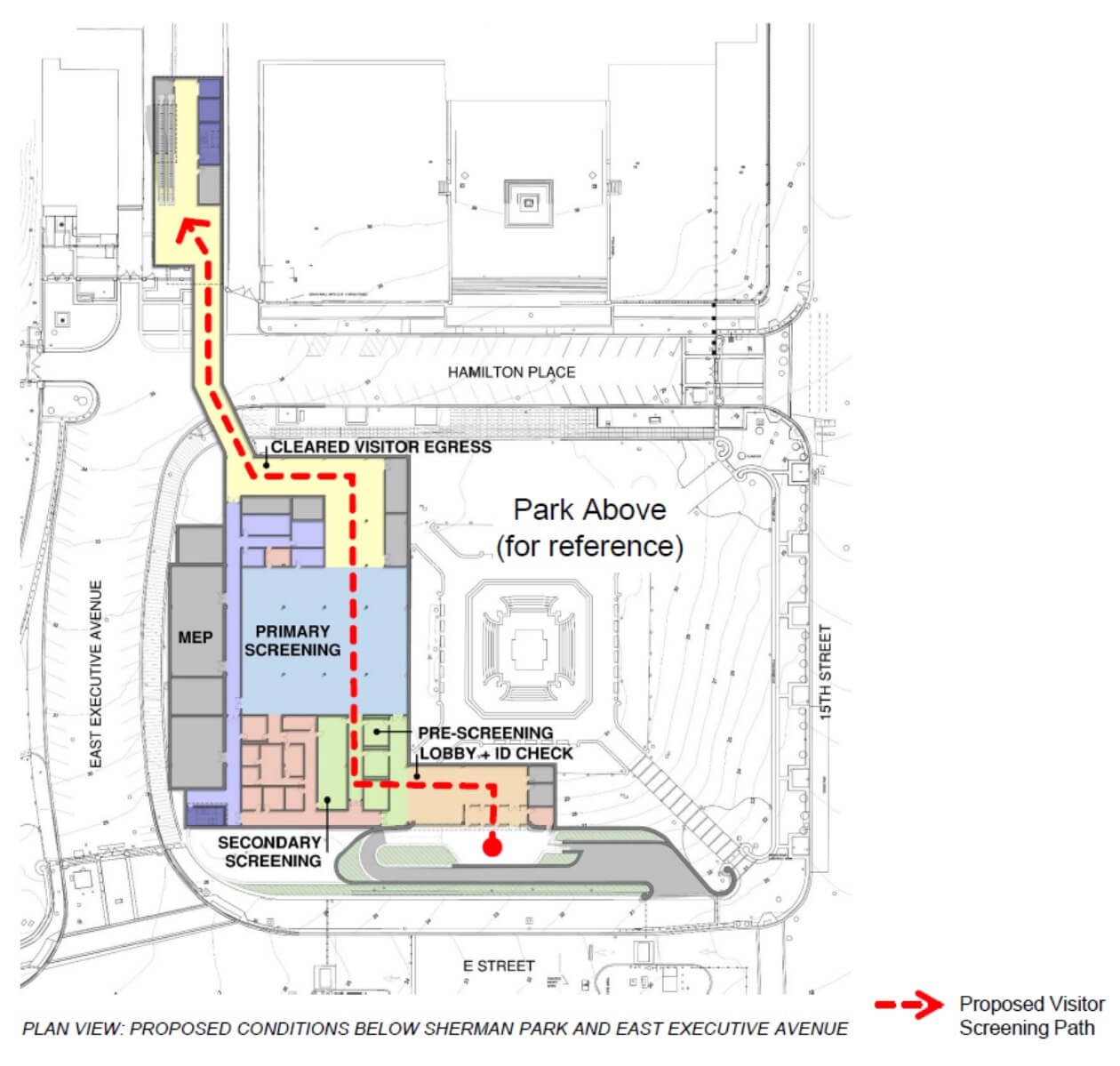 The Trump administration is proposing a new screening facility for White House visitors underneath Sherman Park in conjunction with AECOM and Thornton Tomasetti, according to planning documents submitted to the National Capital Planning Commission (NCPC).