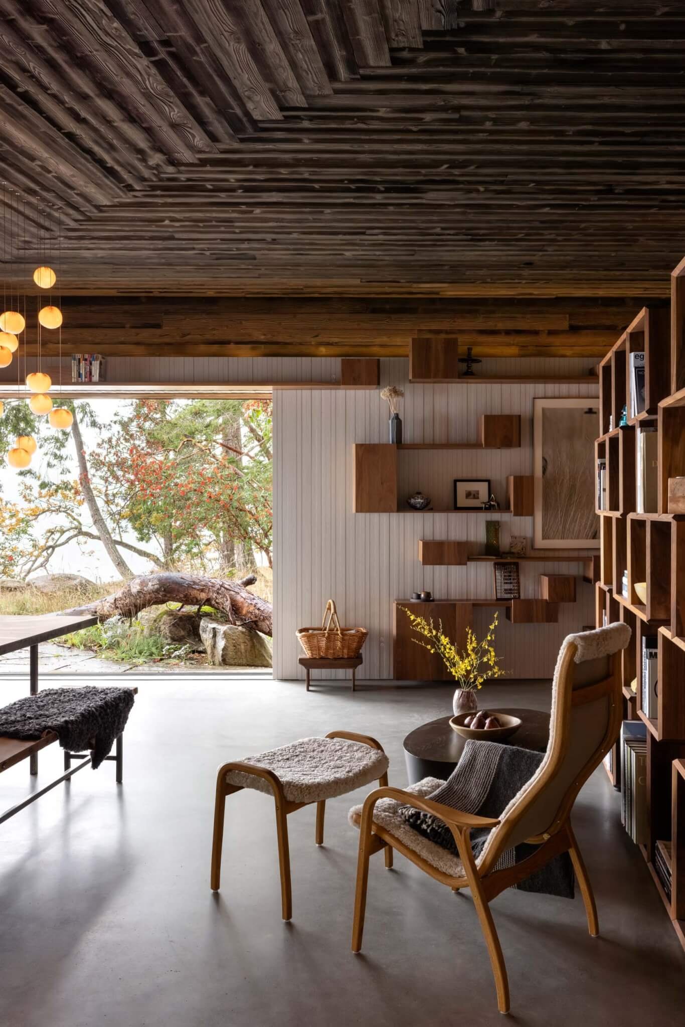 91.0 is a vacation home on Galiano Island clad in sandblasted cedar and lined with wood on its interior. (Ema Peter)