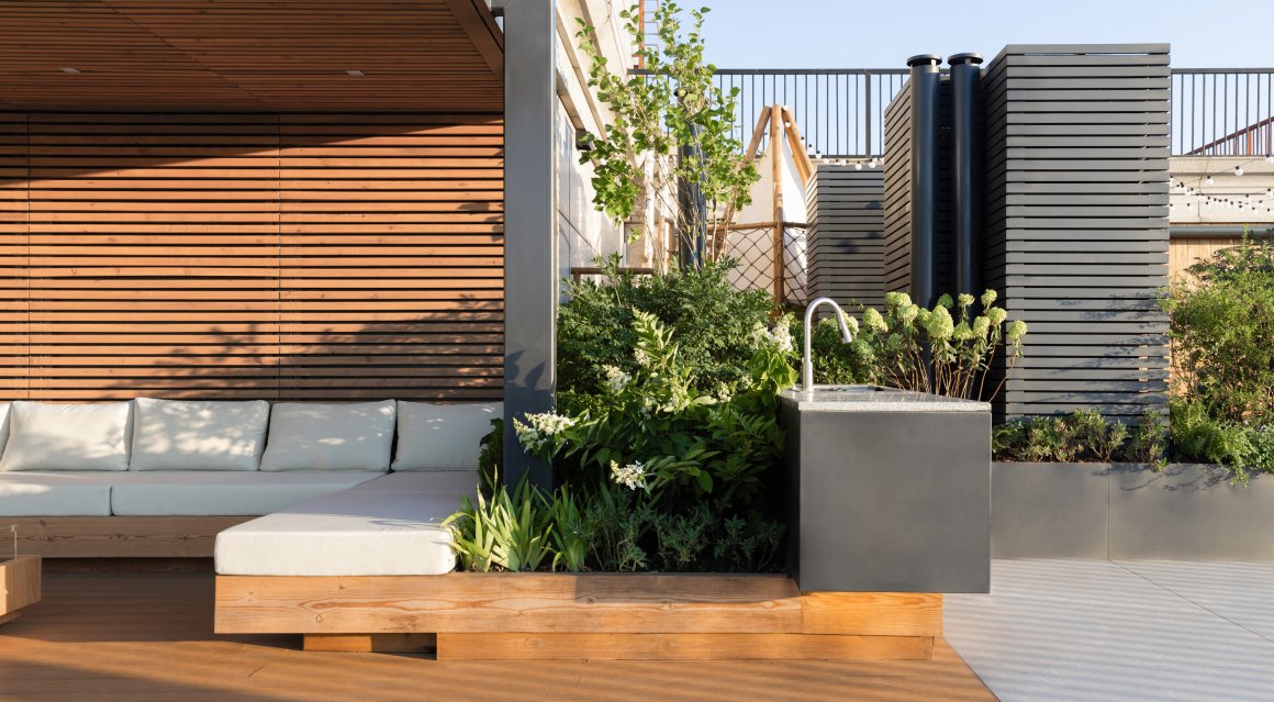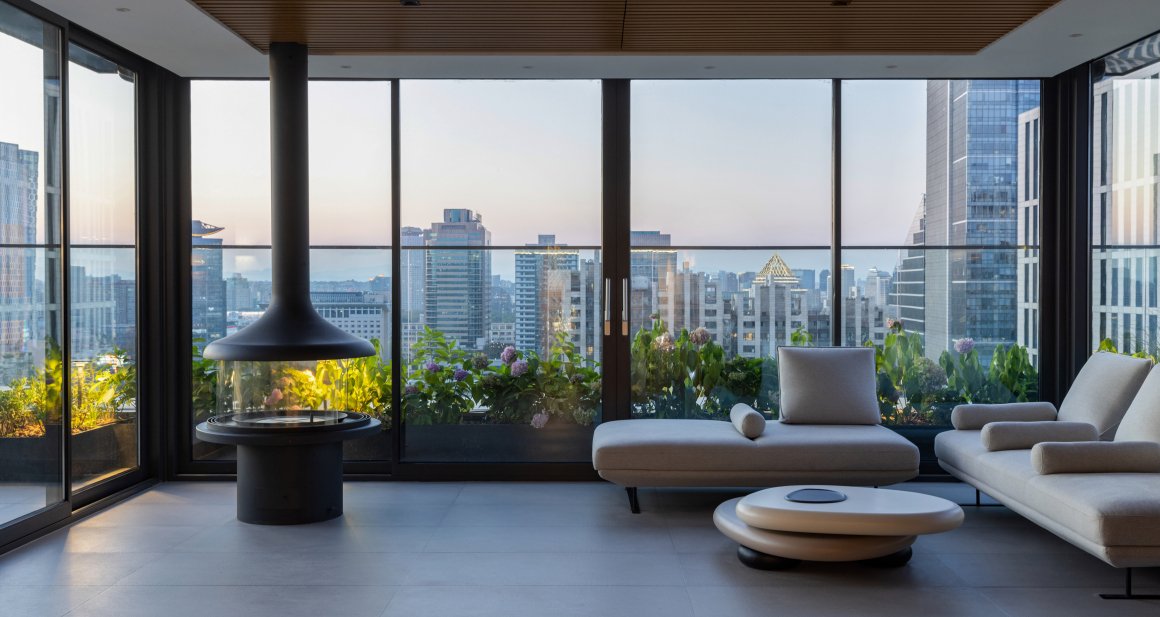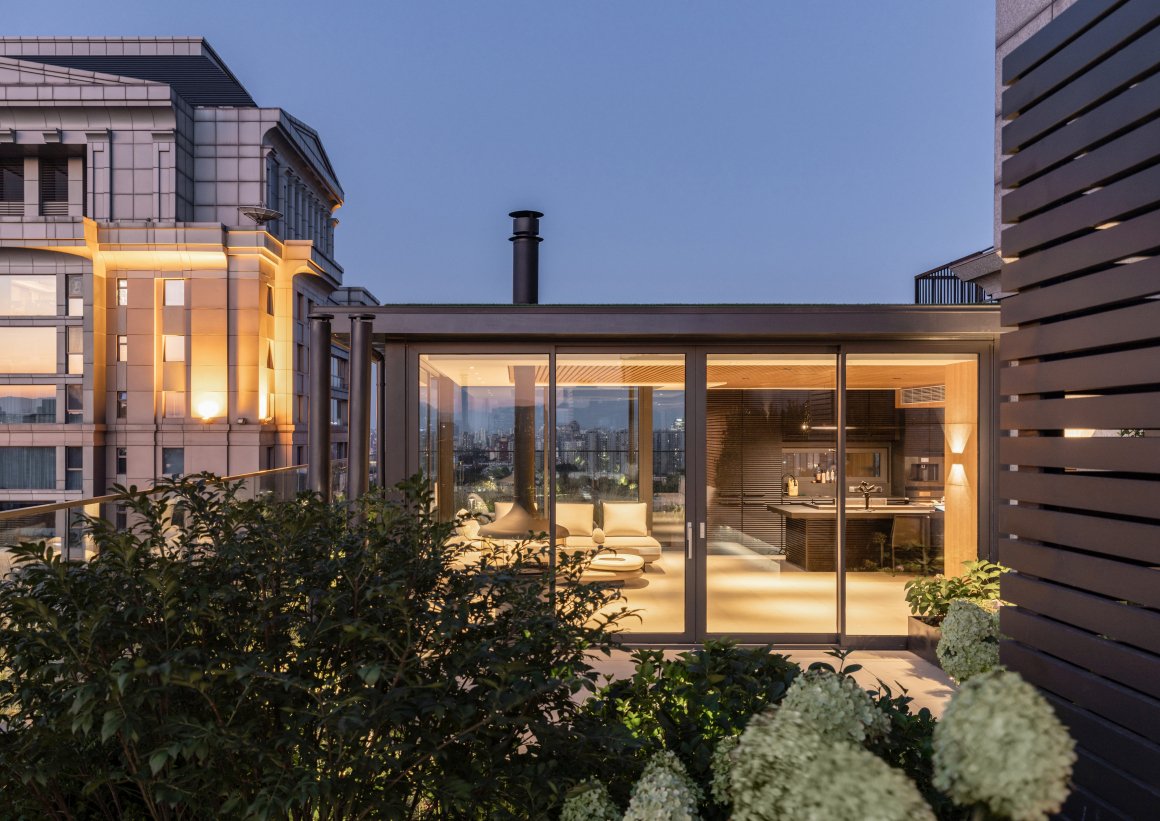 This garden is located on the rooftop of a duplex penthouse in Beijing’s CBD. The original space was dilapidated, seldom used by the family, and there were numerous ventilation shafts. During noon and evening, a strong odor of oil fumes would permeate the air.
