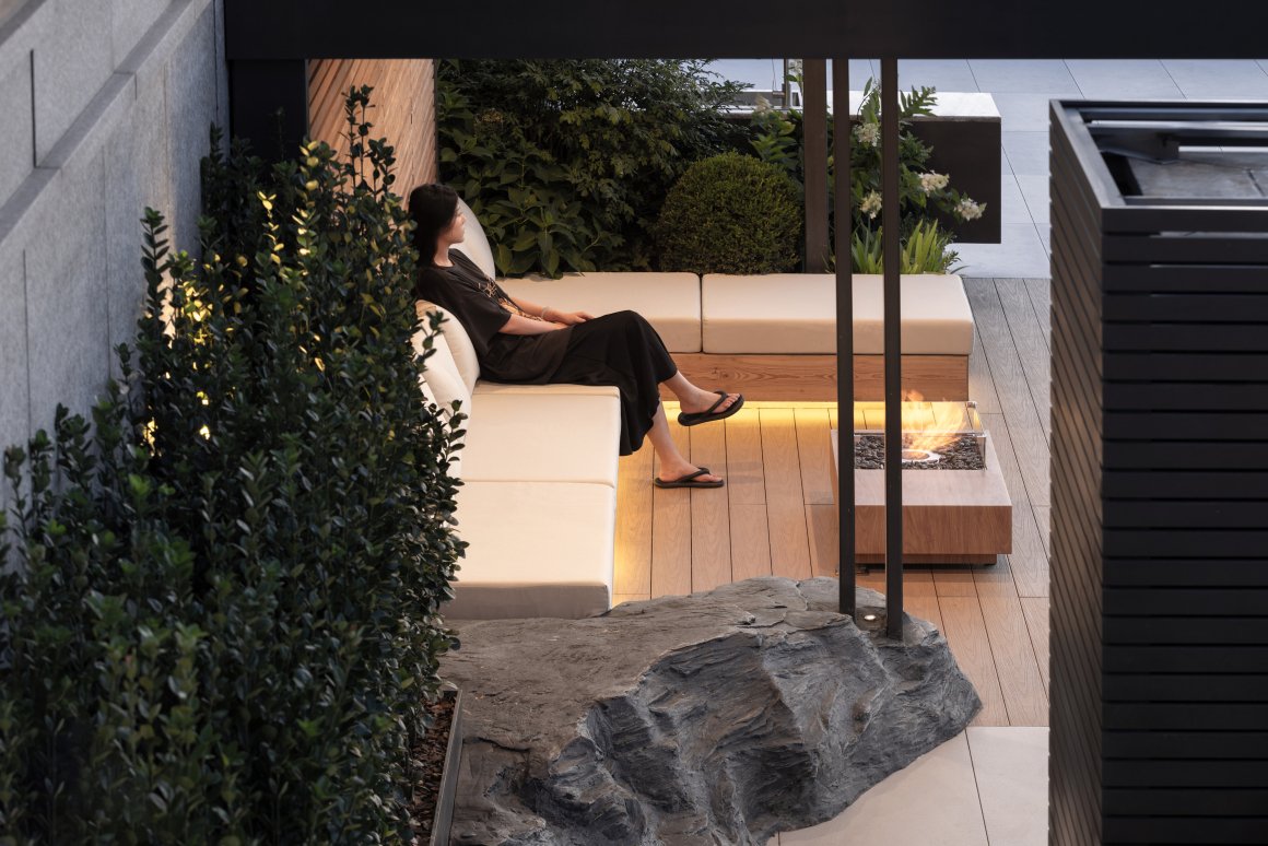 As night falls and the city lights up, you find yourself above the urban rush, detached. A wooden pavilion, a campfire, letting go of the day’s fatigue, greeted by the evening breeze and the lights of countless homes. Fatigue sets in, and you simply turn to enter your bedroom.