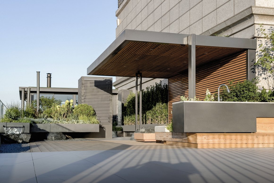 这个园子是位于北京CBD一座高层的顶层复式的屋顶花园,原有的场地非常的破败,一家人很少使用,屋顶还有很多通风口,中午傍晚的时候,会有很浓的油烟味道。