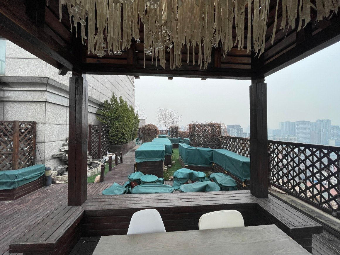 When we visited the site, we were deeply moved by the view overlooking Beijing’s CBD. However, the space felt cramped and oppressive, with ventilation shafts visible everywhere and the pavilion covered in dust. This space deserved better!