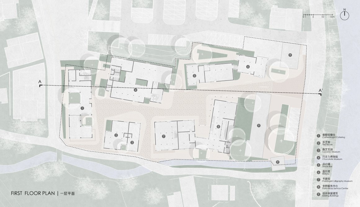 VIA维亚景观长冲村乡村旅游服务聚落位于安徽省庐江县长冲亲子谷的核心区域,东邻县道X070,项目占地6738㎡、总建筑面积3030㎡。项目基地在改造前是一个荒废的国营茶厂,重建后则是集餐饮、茶咖、文化展示等功能的村落式布局的乡村综合服务设施,并与本地村民的社区服务中心结合建设。