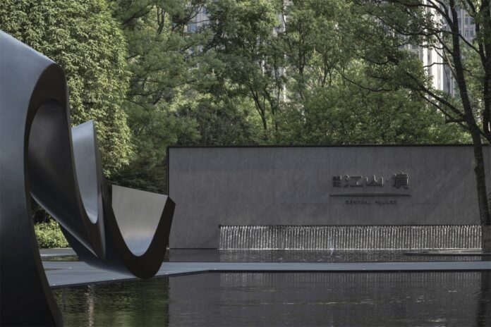 Like calligrapher Zhang Xu’s cursive script, the two sculptures are stable and vivacious standing above the water feature. Their dynamic postures seem to be like a dialog between sky and earth, it can’t help but recall the majestic and surging Xiangjiang River. Wrapped in this camphor forest, the noise of this internet-famous city gradually fades away with the sound of water gurgling, allowing us to focus more on this artistic conversation.