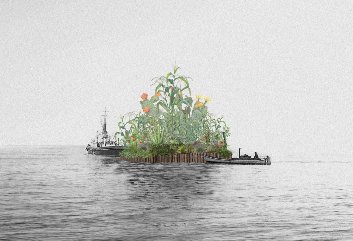 Another enactment floats symbolically in the Venetian Lagoon, as an analogy to the Teatro del Mondo by Aldo Rossi, who conceived of theater as a fulcrum between architecture and the imaginary, capable of building bridges between worlds. On this occasion, the theater becomes the Chinampa del Mondo and presents itself in a proudly ancestral, natural and organic way, in front of the built environment of the city of Venice, creating a new link between two lake cities whose water histories reflect a political struggle for drinking water and territory.
