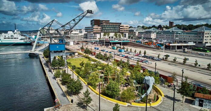 In the heart of the new Oceanhamnen district in Helsingborg, a former dry dock has been transformed into a green community park for all ages. Dockan Park is a playful and inclusive urban space with strong references to the area’s industrial heritage.