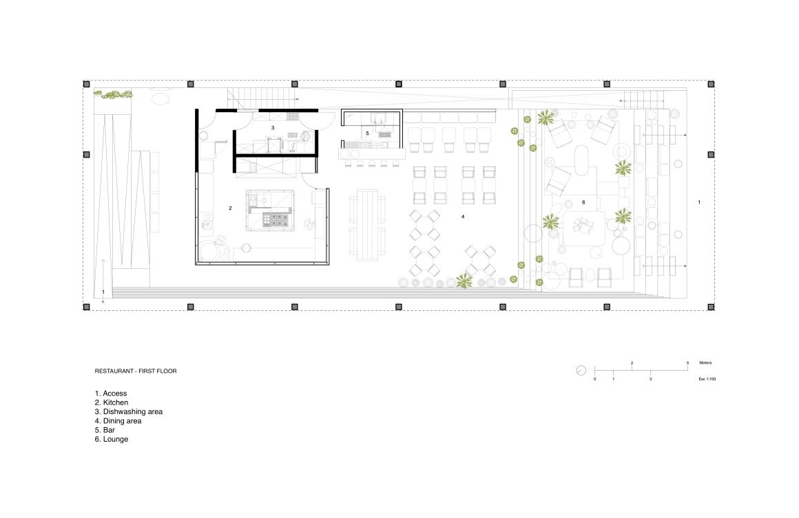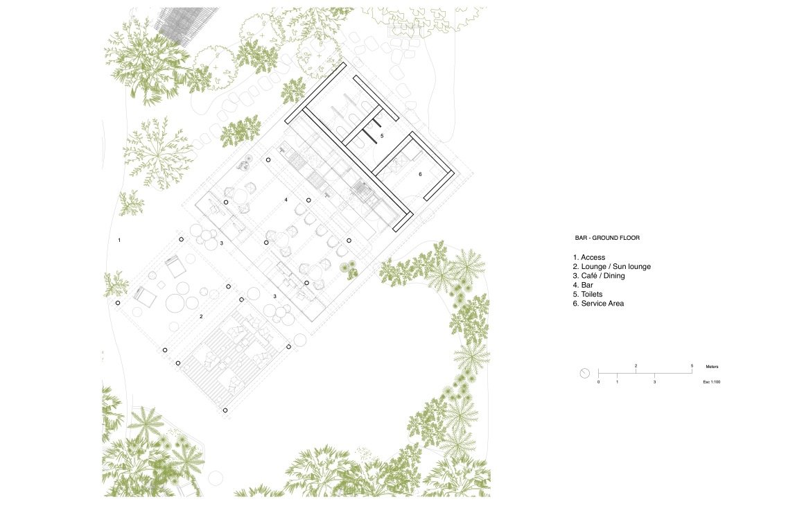 In a further effort to restore the local ecosystem, the project includes new gardens with native vegetation. The presence of an existing mangrove enabled the expansion of this wetland area, creating a pleasant microclimate and a sinuous green concrete pool as the focal point. The design incorporates sustainable practices such as solar panels for power generation and constructed wetlands for the natural treatment of wastewater.