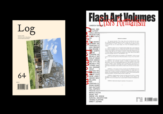Last year, two publications corralled big ideas about architecture discourse. Crisis Formalism, Volumes 002 of Flash Art, edited by ANY’s Nile Greenberg and Michael Abel Deng and premiered last spring, collects projects that respond to a need for “a fundamental rethinking of form itself, not as an outcome of crisis but as its very cause.” Meanwhile Log 64: Toward a Newer Brutalism, or the Undecorated Shed, released over the summer and guest edited by Emmett Zeifman, revisited the 1950s moment of New Brutalism as a way to assess contemporary thinking about form and materials to propose “a found theory of architecture that looks like exactly what it is made of.”