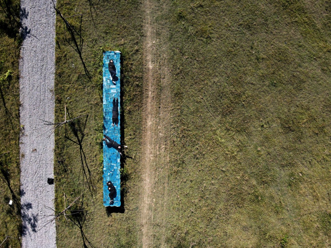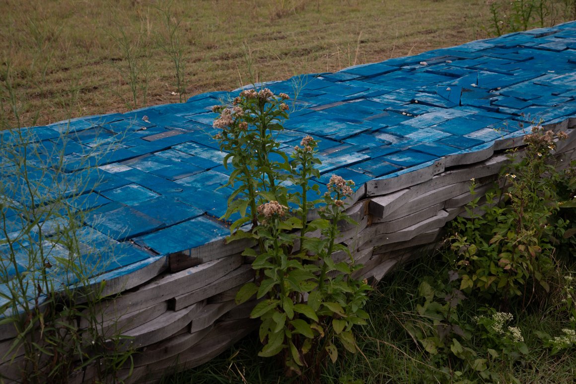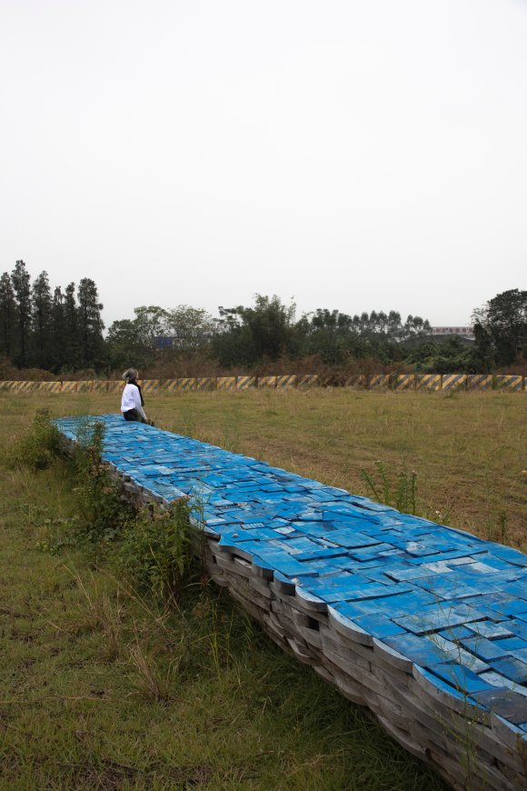 有限设计工作室: 佛山市顺德区龙江镇,以家具生产闻名全国。在镇区尚未建成的龙湖中心公园里,有限设计工作室受邀为龙江的本地企业前进家居做一件公共艺术装置。前进家居创立至今四十五年,一直专注木质家具制作,已成为该领域的专业品牌。前进家居选用的木材来自北美黑胡桃树。大树被切割成板材,飘洋过海来到龙江,板材上再被切出家具部件,剩余木料则被当作垃圾处理。