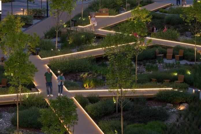 该项目通过建筑和景观设计,在大片陈旧、废弃、过时和废弃的土地上,为儿童、成人、老人和行动不便者等所有人群创造了一个全新而舒适的多样化环境。