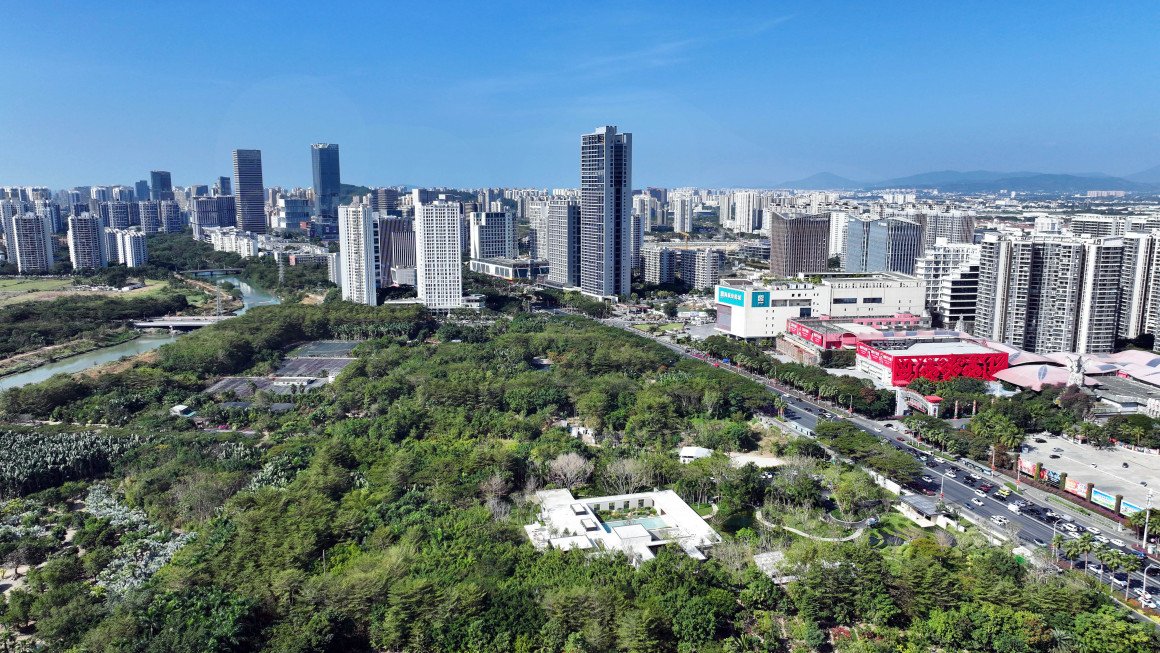 The project is located in the Hailuo district, in the eastern part of the Jiyang Central Business District in Sanya City, covering an area of approximately 2 hectares. Originally, it was a rare, wild piece of land preserved in the city center due to its use as a plant nursery. To the south, the Linchun River converges with the Sanya River before flowing into the sea, while to the southeast lies Hailuo Ridge, an important part of Sanya’s mountainous region. To the north of the site is Yingbin Road, a major urban road, which is separated by just a street from the bustling Haitang Bay Duty-Free Shopping Complex and the Sanya Romance Park scenic area.