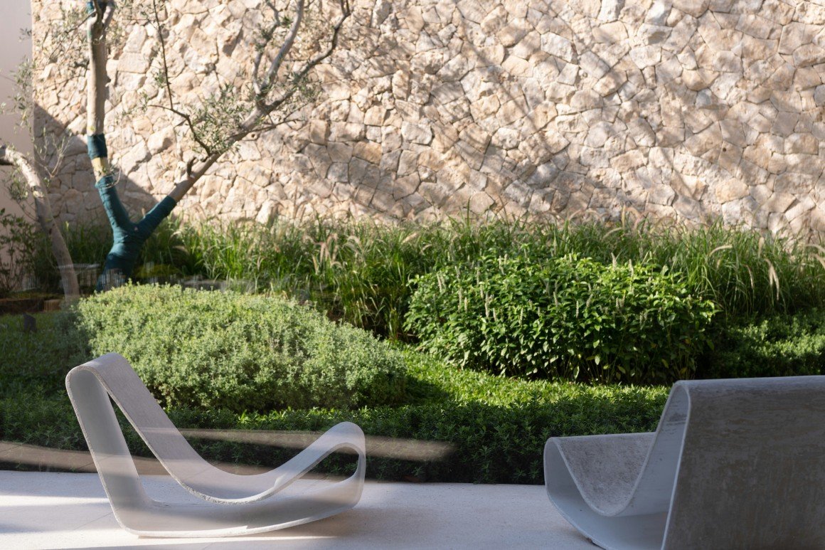 The core of the garden is composed of the building and a series of geometrically designed courtyards. The architecture and interior design were led by Xie Ke and Zhi Hongxin from the Signyan Design, with spatial wall proportions, window placements, and other elements adhering to a distinct geometric order. Open rectangular atriums and enclosed corridors are interspersed throughout, serving as spaces where light and shadow filter in, and where the vitality of nature permeates the environment.