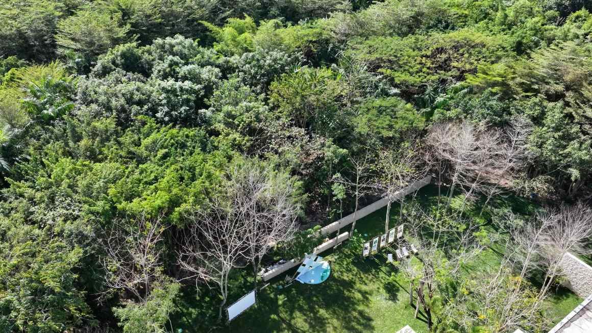 “The selection of a village site should rely on lush groves of trees,” as the saying goes, emphasizing the importance of abundant forests in village placement. At Guanlan Garden, there are no walls marking its boundaries; instead, dense woods serve as the natural perimeter. The preserved and restored water channel extends like a hidden boundary into the depths of the jungle, while the existing vegetation has been transformed into a sparse woodland meadow set against the backdrop of dense forest. Here, hardy, low-maintenance tropical shrubs and groundcover plants are freely arranged. The forest edge, defined by the boundary of the preserved jungle plants, shapes the grassy space around the buildings, creating a tropical courtyard. This design plays a crucial role in defining the scale, depth, density, and visual guidance of the green edge spaces.
