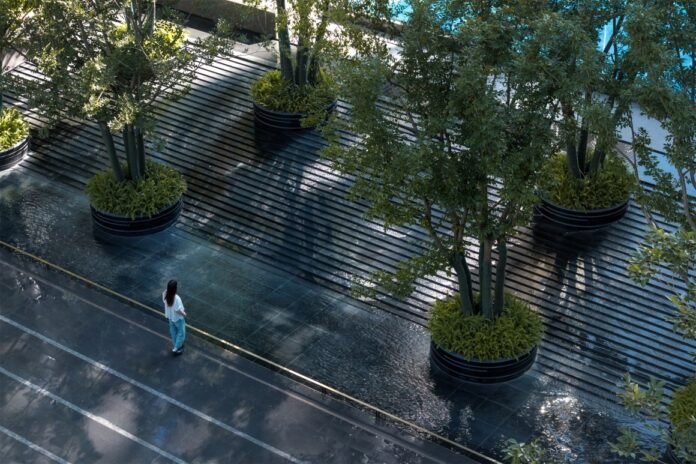 JL Design:The summer in Jiangnan always steps into its most enthusiastic chapter quietly after the Grain Buds. As the rainy season winds down, the sunshine and heat waves come together, and the ancient city of Hangzhou becomes even more gentle and warm under the July sunshine. Walking into the residential area, the coolness of the waterside, the breeze of the woods, the cicadas and children’s voices are intertwined, which instantly reminds me of the popular saying: “When I save up enough sixpence, I’ll go to the moon.” Sixpence represents the reality of life, while the moon symbolizes art and dreams. At this moment, the residential area seems to have sixpence already.