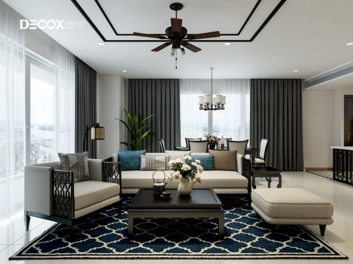 The homeowner requires the interior space to have something new and unique compared to other conventional apartment interior designs in modern styles. Since then, still based on modern interior style, Decox Design’s designers have advised combining with Indochine interior style to create a difference. Using characteristic curvy motifs, natural wood furniture and using quiet but striking colors, the interior space exudes modern luxury, full amenities but still has a few old features from decades ago.