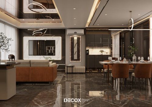The 2-bedroom apartment at The Ascentia project was chosen by Decox Design to design in a Modern style combined with high-end Luxury. The beauty of the home is based on the perfection and generosity of the homeowner’s personality. At first glance, elegance, luxury and order seem to cover the entire living space. Interior design emphasizes personalization through the choice and combination of material elements, colors and space layout construction. Specifically, deep color tones of black – brown – gray – white are mixed to highlight the trendy personality of the apartment. Luxury here will be defined by cold materials and high-quality furniture with strong, modern lines.