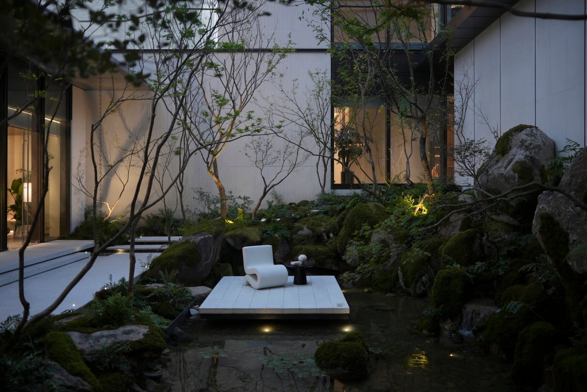 设计之初我们便思考:看过世界的人所期许的院子是什么样的?恢弘华丽的造景或许是一种 解题方式,然而我们更希望景观于此——是带着自然的拙朴,以未经雕琢的山石、野生植物 和原生水景呈现,呈现出一种简约纯粹的美感;而在这质朴的背后,却蕴藏着极致的居住体验,细腻的空间布局与设定,带来心灵的疗愈与感官的舒适,形成一种既返璞归真又无微不至的生活状态。