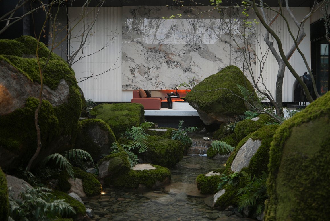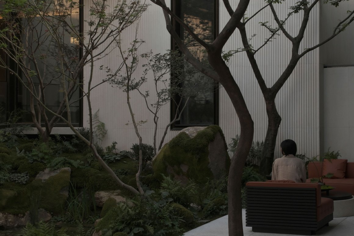 The framework of the landscape space is inspired by the forms of natural mountains and waters. Although each courtyard is not large, the massive stones, naturally cascading streams, soft moss, and relaxed groves create an atmosphere that brings scenes of nature into the urban residence. The courtyards, though compact, are imbued with the thriving vitality of nature, evoking a sense of awe and emotional resonance.