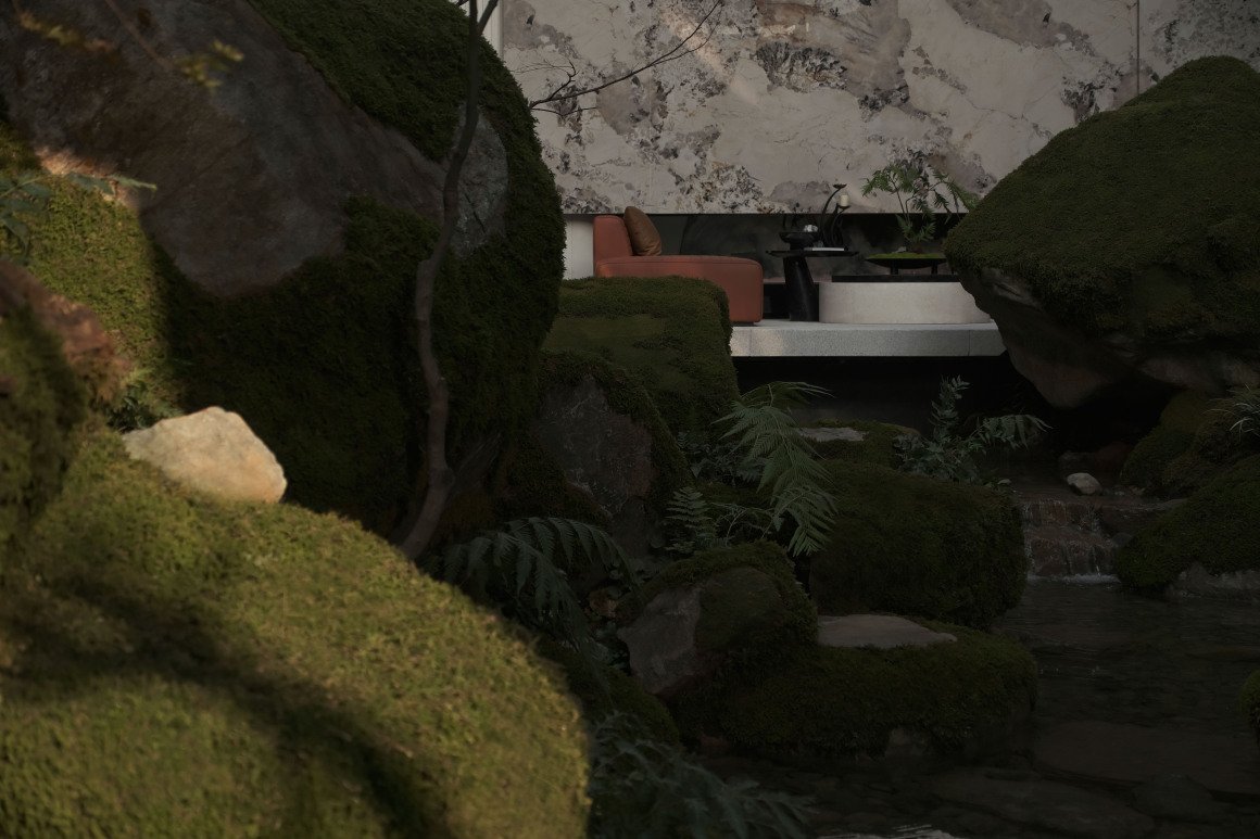 From the beginning of the design process, we considered: What kind of courtyard would appeal to those with a deep understanding of the world? Grand and elaborate landscaping could be one approach, but we envisioned something more natural and understated. By using uncarved stones, wild plants, and native water features, we aimed to create a sense of simple and pure beauty. Behind this simplicity lies an exceptional living experience—meticulous spatial planning and thoughtful details provide a sense of healing and sensory comfort, fostering a lifestyle that is both authentic and attentive.