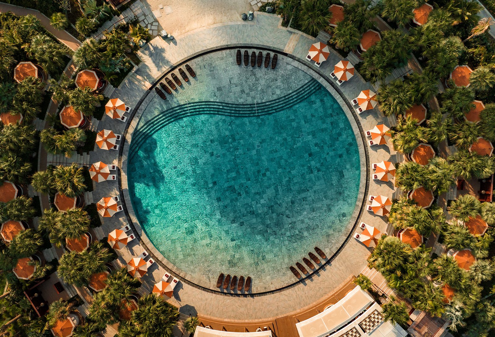 The ‘shift’ in the length of the hotel responds to the reclaimed peninsular between the private extended beach and the new marina, creating an opportunity for generous drop-offs, in addition to a large 4-storey vertical opening in the building that frames the clear and uninterrupted views of the surrounding. The shift splits the building into the landward F&B and spa zones, and the seaward hotel guest-rooms, ensuring the privacy and exclusiveness for the most discerning guests.