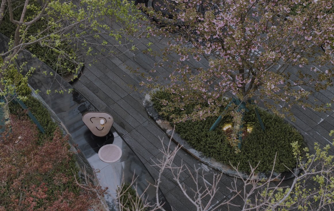 现状纵深50米,近4000平米的大广场、初代新中式建筑、原设计的景观格局以及甲方要求不能拆除的构筑基础,使得改造受到一定程度的局限。也正因为如此,OPC物象团队决定“化整为零,解构重塑。”并给予“得山一角”的总体思路。