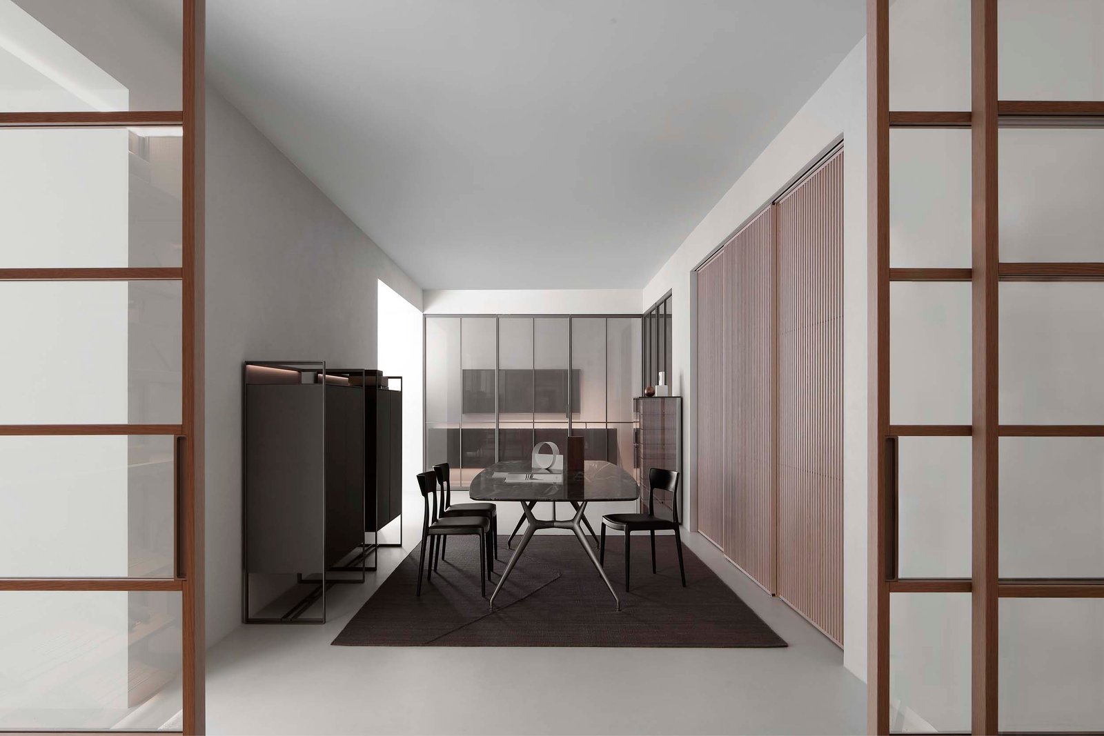 In Los Angeles’s Design District, a new 3,500-square-foot space creates a journey through Rimadesio’s offerings. The interior architecture studio, Luca Lanzetta Group, worked within Rimadesio’s in-house team, R Studio, to create a journey through the brand’s many offerings, from doors to furnishings to organizational systems. The collaboration marks the first monobrand store for Rimadesio and the first retail project in Los Angeles for the architects.