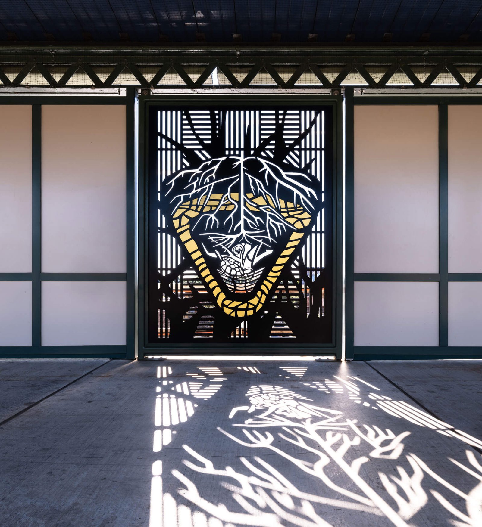 For jury member Dario Calmese, The Institute of Black Imagination’s founder and CEO, Land Between Open Water deftly uses “shadow and light to enliven the everyday for Bronx commuters, while also revealing the hidden layers and histories that lie just underneath the pavement.”