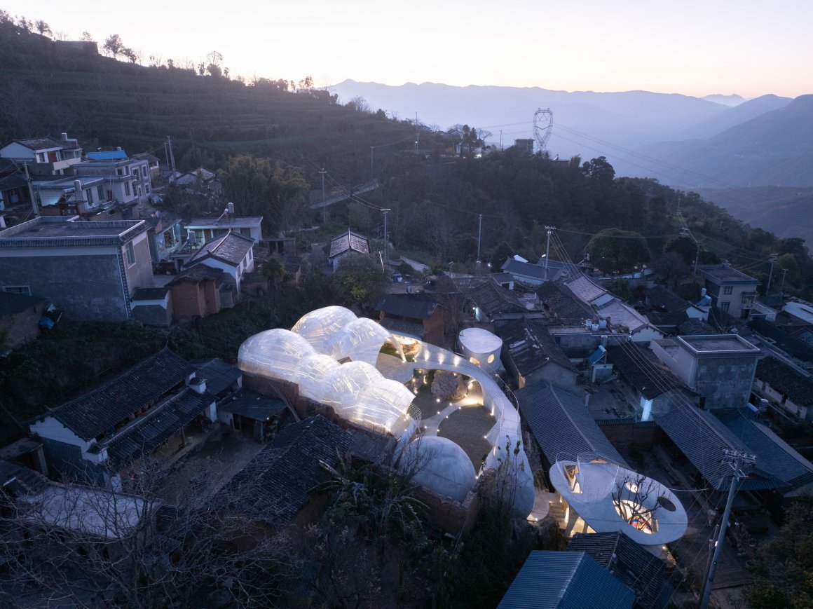 Kong Xiangwei Studio:Tucked into the folds of the Wuliang Mountains, Yanzitou Village—a secluded hamlet inhabited by six ethnic groups (Han, Yi, Bai, Dai, Li, and Hani)—faces the paradox of rural decline amidst its pristine landscape. With only 71 households, the village struggles with depopulation and aging residents as youth migrate for work. Yet, weekends brim with vitality as children return from town schools, filling the plaza near the village history museum with laughter. The book house, sited on a narrow rocky plot between two old dwellings and shaded by a sprawling raisin tree, acts as both a cultural gateway to the future community center and a beacon for rural rejuvenation.