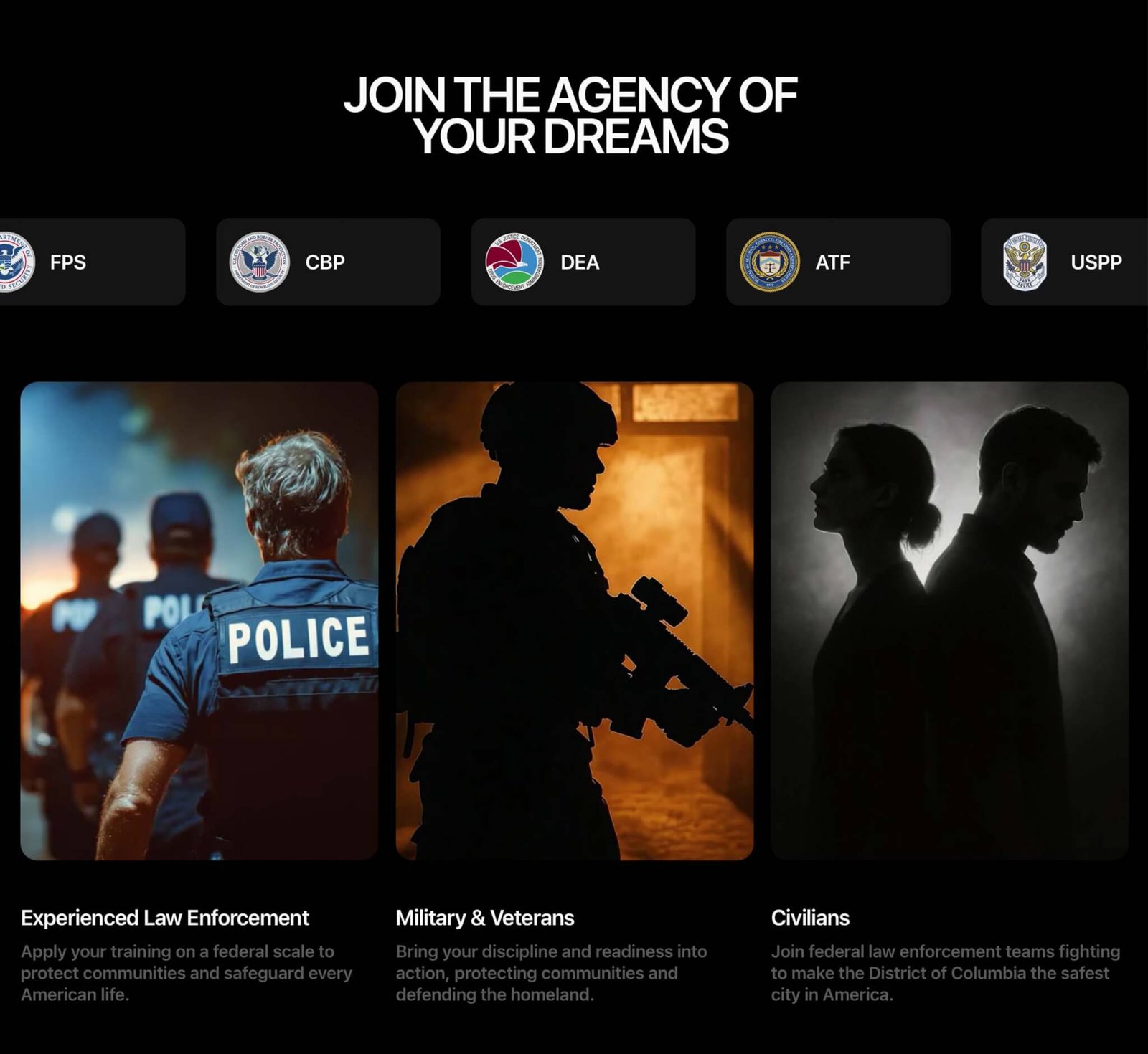 If you land on the homepages for some of NDS’s first forays—the NDS site itself, the Trump Gold Card site, or the Safe DC initiative—the Apple Store isn’t exactly what comes to mind first. The Safe DC site begins with an AI-generated image of Trump flanked by armed police, and ends with the words Task Force stomped on by a muddy boot print (in other words: tread on me, daddy). It’s more “true crime drama” than “consumer tech minimalism.” The Trump Card website is similarly perplexing, sort of like if someone tried to redesign a credit card with the visual language of a protein bar. It uses Instrument Serif, an open-source revival of the condensed serif style Apple favored in the 1980s, now repopularized and in use by everyone from Vacation Sunscreen and Graza Olive Oil to tech darling Perplexity. Beyond the obvious Steve Jobs fan service, Trump has a documented preoccupation with serifs; he recently ordered all government documents reverted to Times New Roman (a state department cable described the move to the prior typeface, the sans serif Calibri, as “yet another wasteful DEI program”). If Times New Roman calls to mind ’90s Microsoft Word and early 2000s CIA Interrogation Reports, Instrument Serif points a bit more backwards—toward Trump’s own 1980s aesthetic of luxury and excess, and a broader conservative nostalgia for that era’s corporate gloss.