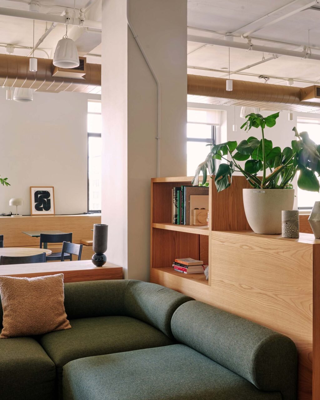 Custom millwork designed by Office of Tangible Space, and fabricated by Thirdkind, carves out the gathering spaces.