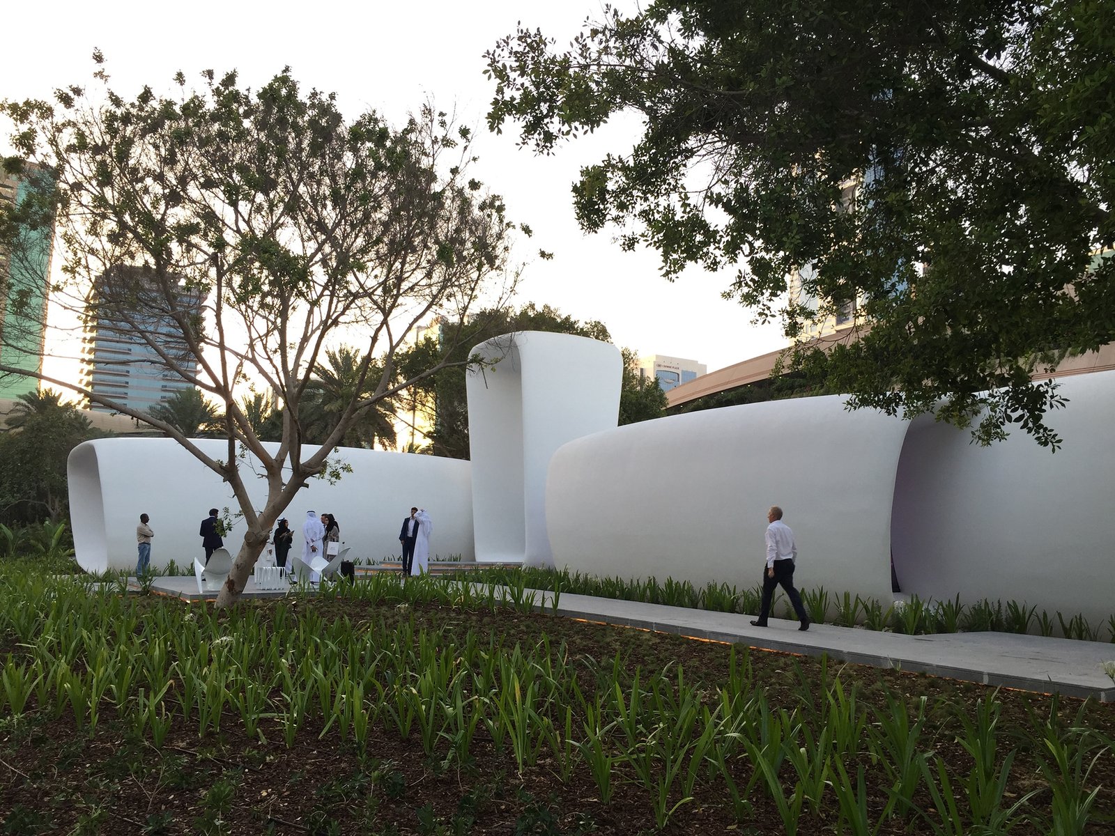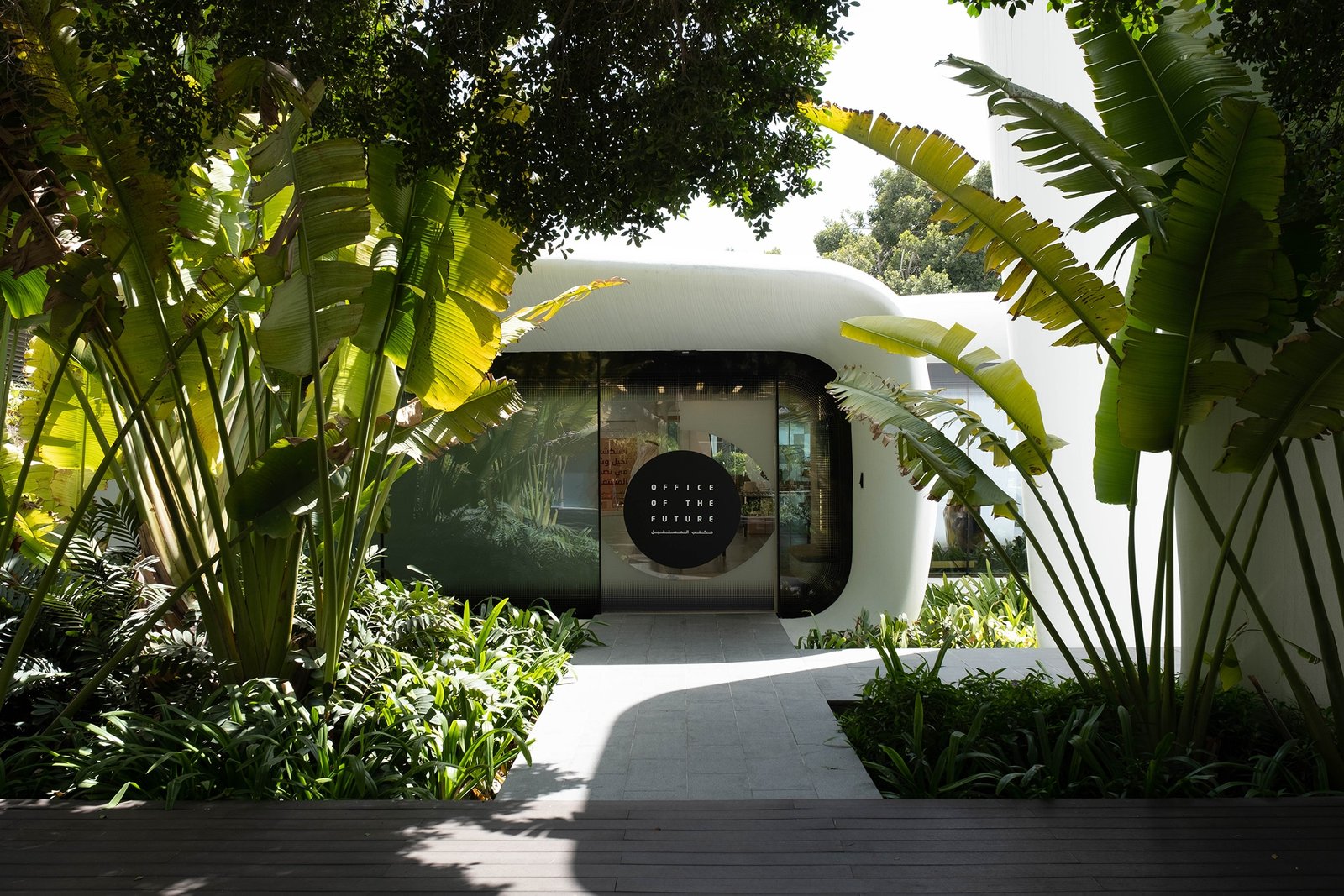 The Office of the Future is the world’s first fully functional and permanently occupied ‘3D printed’ building. The pavilion acts as a temporary home for the Dubai Future Foundation, as well as an exhibition space and incubator for future emerging technologies in the region. The entire structure was ‘printed’ in concrete using an additive manufacturing technique.