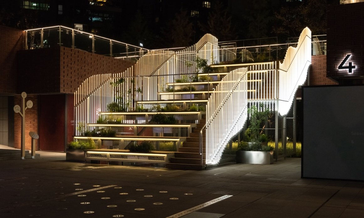 ▽雾梯是观演山坡的姊妹装置,既连接活动场露台又链接商业内街 © 王鹏飞