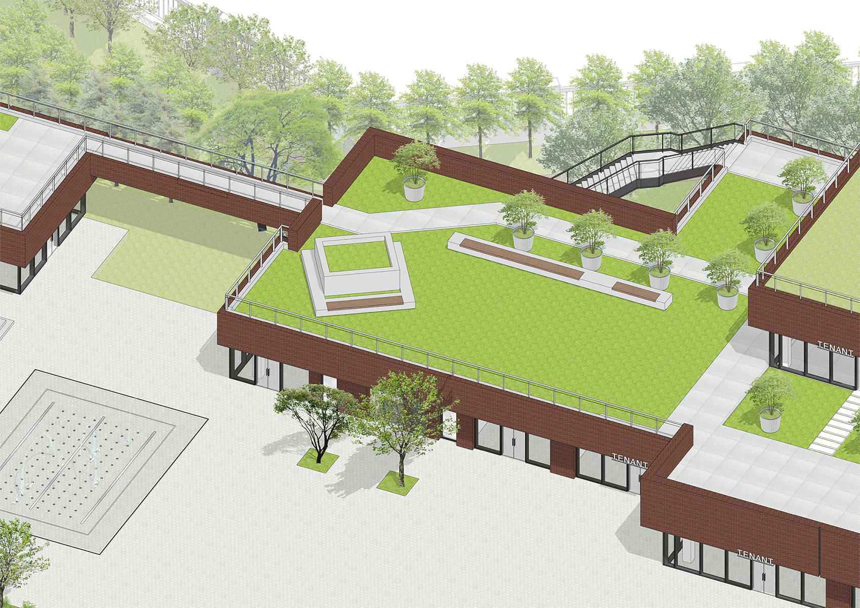 The upper terraces and lower streets are connected through adaptive interventions guided by the principle of Adhocism. This approach emphasizes sustainable thinking, from design to construction and, ideally, throughout the operational phases. The design concept is rooted in Biophilia, incorporating three key aspects : Mimicry, Green, and Timber structure.Wherever possible, MEP facilities are creatively repurposed—for instance, electrical boxes are transformed into poster boards or dog walking signage—underscoring a commitment to sustainable design.