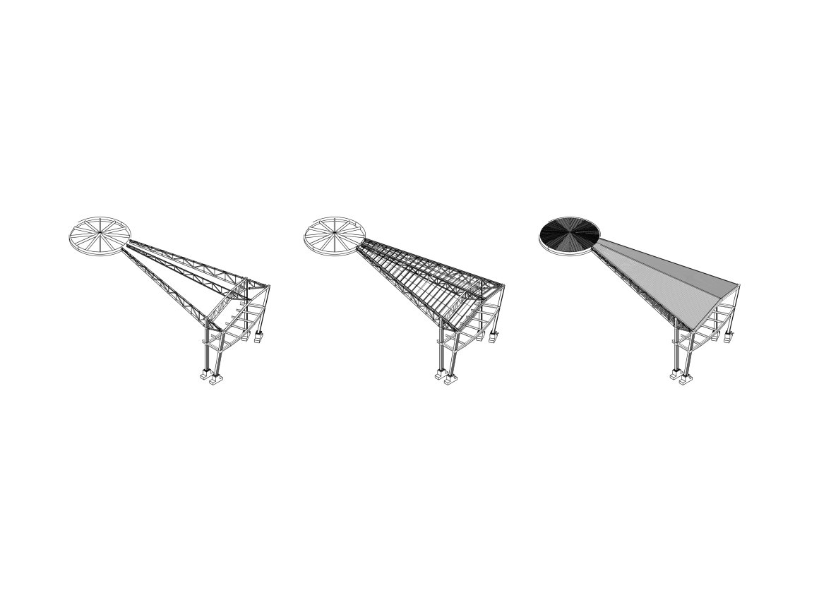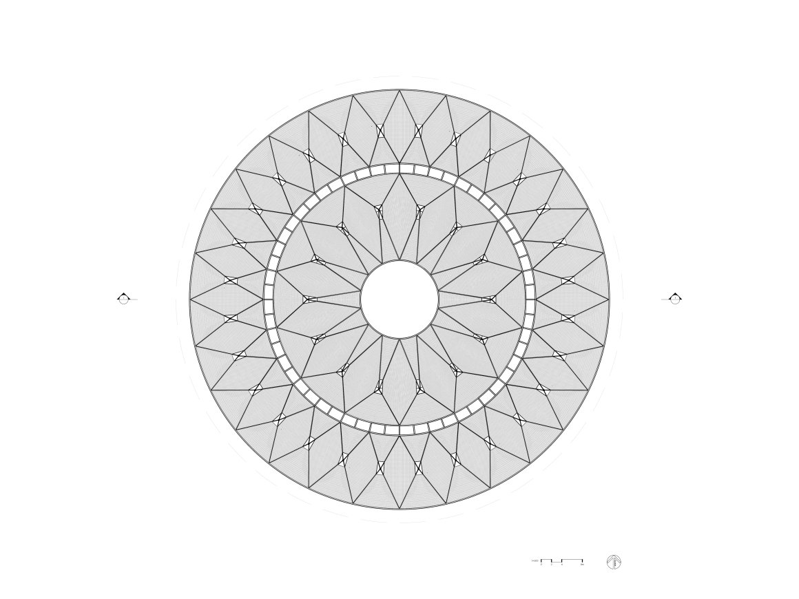 此外,项目使用参数化设计工具来促进形态探索方法,从而能够创造出既美观又结构高效的建筑。由此开发出一些列以圆形平面布局多种类型建筑模型,但每个建筑都具有独特的结构解决方案。