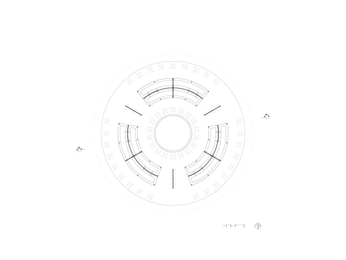 Each facility was assigned a specific circumference, determining its placement on the layout according to its hierarchy and functional needs. The connections between these circular venues were established through tangent arcs, creating a continuous loop that softens the rigid boundaries of the site and organizes the diverse typologies into a coherent masterplan design.