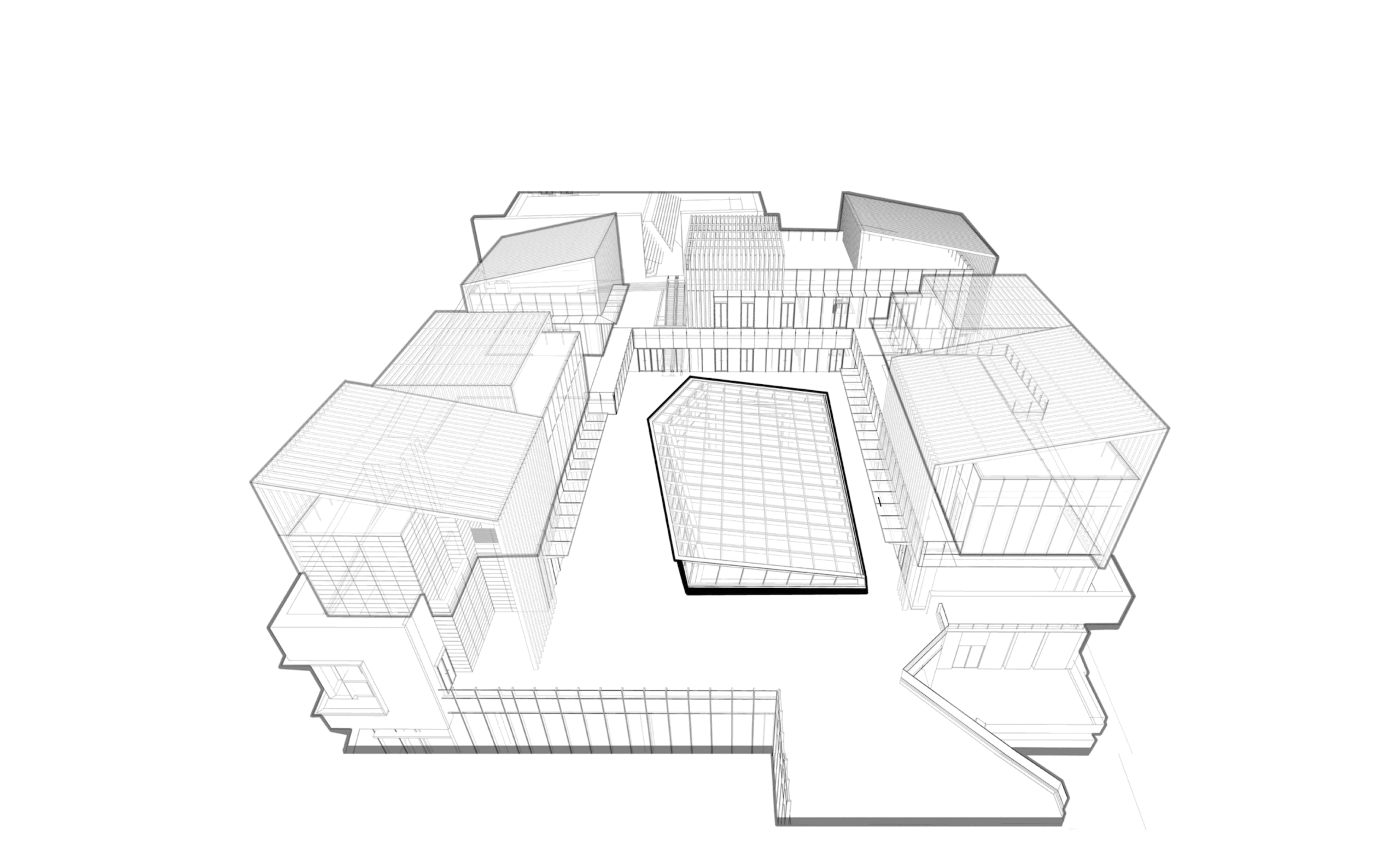 L3采光井占据了L4的中心,使得L4屋面成为回廊型空间,形成狭长型的的通道关系,商业外界面的拓展及景观功能的发挥受到局限性。屋面没有较好的覆土条件,加上狭长的空间关系,需要预留商业延展及通道,如何做到同时具备功能的需求与自然的界面,也存在巨大挑战。