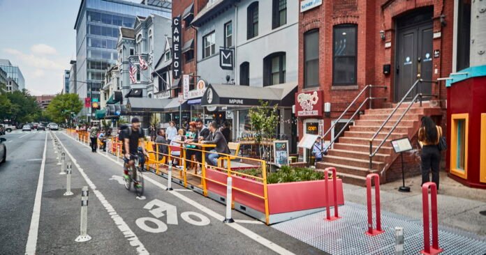 The goal of the project was to establish a warm and inviting neighborhood atmosphere that would accommodate forthcoming residential developments. To realize this vision, there were two main challenges to address: congested sidewalks that hindered social gatherings and dining experiences, and the need to introduce greenery to an urban environment dominated by pavement.