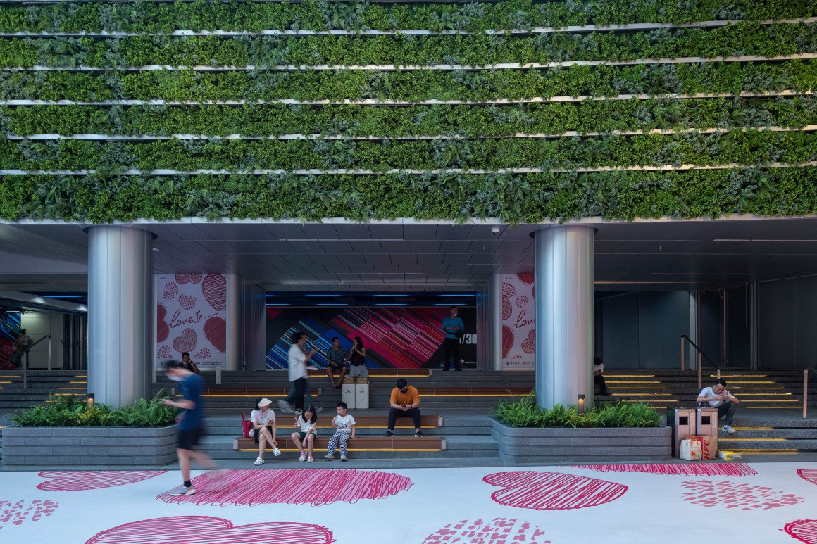 Green walls, art sculptures, and architecture form a multi-dimensional suspended landscape in the air. Adding a natural experience to the composite space while shaping strong visual guidance, linking the ground and underground
