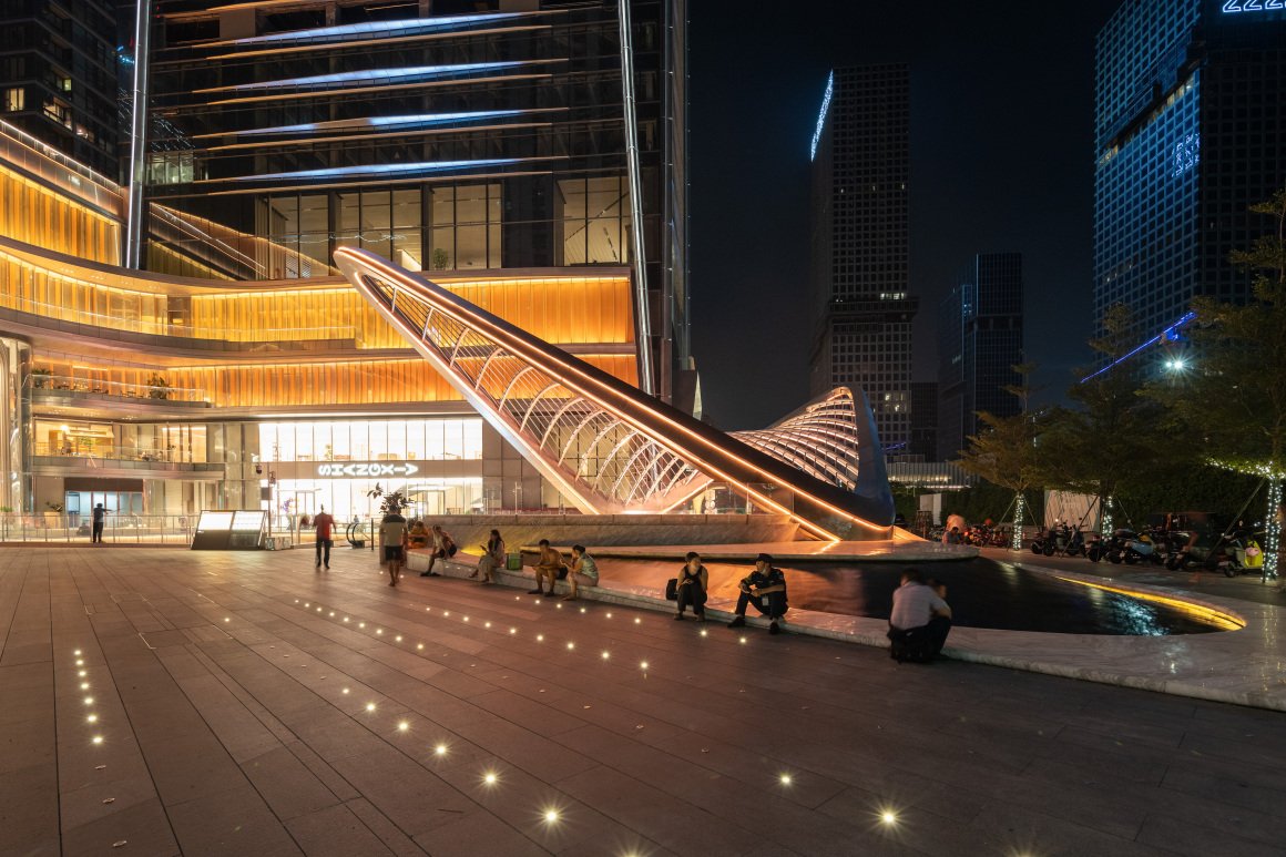 The butterfly shaped canopy, full of futuristic technology, landed at the center of the plate like an extraterrestrial object. Sculpture has become the visual center of SIC, and the landscape shapes the water scenery stage for its wonderful presentation, creating a picture full of imaginative tension. The slowly flowing water adds to the original natural sound effects. The vitality field is both future and natural.